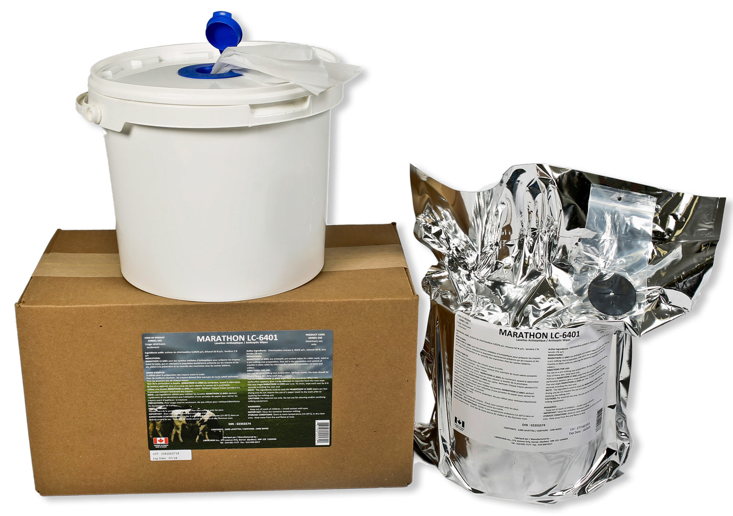 MARATHON LC-6401 are antiseptic-soaked teat wipes for preparing teats before milking. By reducing the bacterial population on the teats, they help prevent and control mastitis in dairy cows.