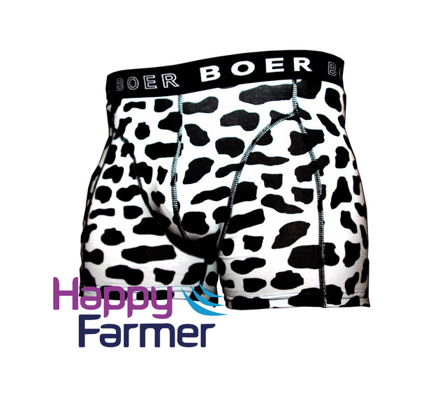 Boer Boer boxershorts with the unique cow spots design in the color black / white. The Boer Boer boxer shorts are of ultimate quality (cotton) and have been tested for 6 months on wearing comfort, fabric quality, color retention and washing-drying machine resistance. A super nice and successful gift idea!